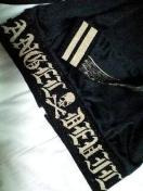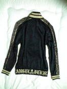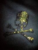 胸にスワロスカル。後ろの裾部分にはスカルと文字があり袖口と襟にも金のラメ糸が織り込まれています。