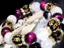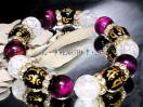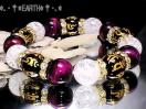天然石★金彫り守本尊七字梵字黒瑪瑙ピンクタイガ-アイ・クラック水晶数珠
