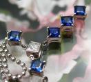 良質のサファイアの中でキラッと輝く一粒のダイヤモンドがペンダントの存在をアピール。