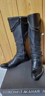 全体にダスティー加工、ホツレ加工がされ表面にはスカルや英字がデザインされた加工に凝ったデザイン性あるブーツです。