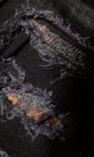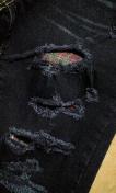 ハードなクラッシュ加工を施しロゴやチェック柄の当て布をリペア部分に使用してます。