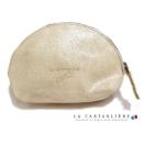きらきらのラメ感&パステルカラーの可愛らしさと、厚手レザーで高級感も兼ね備えた半円型のポーチ。リップやUSBアダプター、充電ケーブルなど普段持ち歩く細々した物を入れるのにちょうど良いサイズのポーチ。