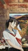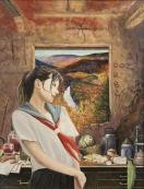 前に描いた『天国への階段』もそうですが、登場する風景・人物・静物等、ひとつひとつに全てに意味があって描いてあります(象徴的にならないようさりげなく描いたつもりですが)。それらを答えるつもりはないので、良かったら考えてくださいね。