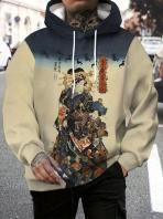 ユニークなドラゴンプリントのメンズカジュアルフーディー - 屋外レジャー用快適ポリエステルプルオーバー、洗濯機可