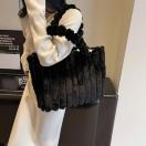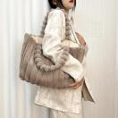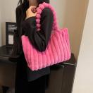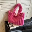 トレンディなコーデュロイのトートバッグ、フェイクファー、軽量、耐久性、カジュアルスタイル、ビーチ、ショッピング、日常使用に最適 - ベージュ、ピンク、ブラックの3色展開、マグネット開閉、ポリエステル裏地、手洗いまたはドライクリーニング