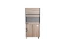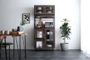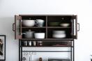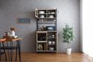 1台で食器や調理家電をまとめて収納できるガラス扉・フラップ扉付き食器棚です。