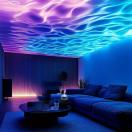 カラーチェンジウォーターリップルプロジェクターランプ、USB給電LEDテーブルトップライト、リモコン付き、プッシュボタン操作、ABS素材、非充電式、ホームデコレーションに最適