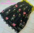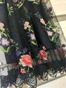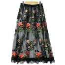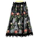 黒のチュールに豪華な花柄刺繍が施されたロングスカートになります。