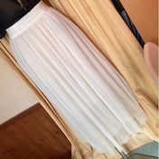 ニット素材のグレーグリーンのプリーツスカートで、通気性のあるレースニットデザインが特徴です。