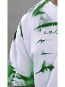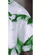 メンズサマーストリートウェア3DデジタルプリントTシャツ - レギュラーフィット、ラウンドネック、グリーンリーフ柄のホワイト、軽量ポリエステル生地、カジュアルで通気性のあるカジュアルアットワード