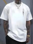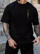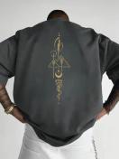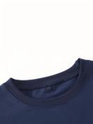 Shule Water OBM メンズ ネイビーブルー 幾何学プリント ルーズフィットTシャツ - カジュアル半袖ラウンドネックトップ、ゴールデンアブストラクトデザイン、カジュアルな服装に適したオールシーズンベーサタイルシャツ、多用途衣類 | アブストラクトデザインシャツ | 微妙なゴールドのアクセント