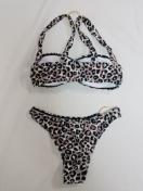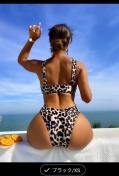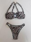 ヒョウ柄デザイン セパレート水着、金具付きストラップでスタイリッシュ。
