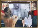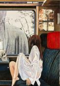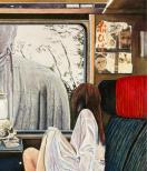 確か記憶によれば、キリスト教には黄泉の世界(天国と地獄の間にある世界)は存在しなかったと思います。故に、この絵のタイトルからすると、日本という国からしても、ほぼ仏教。詳しく述べたらキリがないので、極楽浄土(天国)、黄泉、地獄(宗派によっては何層にも分別されます)の三つに分け、この列車は黄泉を走り、天国に行くのか、はたまた地獄に行くのかまだ不明の列車です。