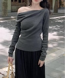 大人ムードでヘルシーな肌見せが楽しめる、韓国っぽオフショルトップスです