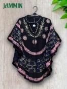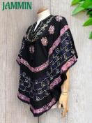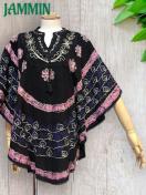 ざっくりした造りで、可愛いシルエットの刺繍&ろうけつ染めポンチョ風トップスです。