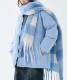 フェザー70%ダウン30%、優しい淡いブルーが素敵