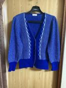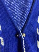 2060.デザインニットカーディガン☆ロイヤルブルー×シルバー☆サイズL