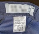 ウエスト内側のブランドタグにネームラベル(病院名、英字、 個人名(男性)の印字あり)が貼り付け。画像は加工しています。