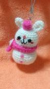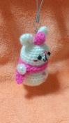 うさ雪だるま*編みぐるみストラップ(ショッキングピンク)