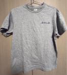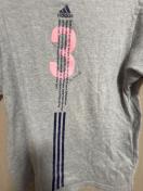グレーのadidas Tシャツ、刺繍ロゴ付き。