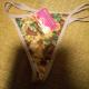 レディース ベージュ系花柄模様後ろ紐Tバックショーツ F
