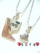 ネックレスをつけると『LOVE is…YOU』のメッセージが入る2本セット