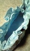 サテン生地のような光沢ある素材で、開閉ファスナー式。