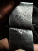胸元にはブラックゴールドの輝きを放つメタルでDIRTY