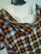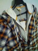 商品説明チェックパーカーの中に、グレーのパーカーがドッキングされたアイテムオレンジのラインがいいアクセントになっています一枚で着てオシャレなアイテムです