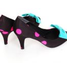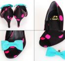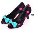 クラスキー ドット柄オープントゥパンプス ブルーリボン