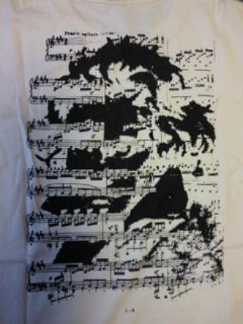 バックプリントの楽譜の中にベートーベンの顔が隠れてる不思議〓なプリントです