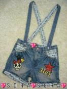 フロントやBACK部分にCUTEなワッペン付きサスペンダーも付いてサイズ調整可能で取り外しも可能な2Way