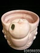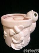 りんごがデザインされた容器に水を入れておくと、約2〜3日間 土が少し