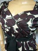 印象的な大柄ジオメ柄と裾の柄の切り替えがオシャレでカシュクールなので鎖骨や首元ラインがとても綺麗