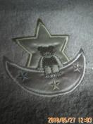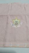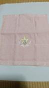 ピンク色のハンカチ縁には、星と三日月の刺繍があり、中には、星を背にした可愛い子クマが三日月に座っています。何とも言いようのない可愛いさがあります。サイズは34×36センチ。画質が余り良く無いので、何処まで伝わるか分かりません。未使用です