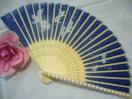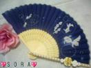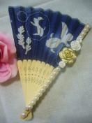 幻想的な泳ぐ金魚が描かれた艶やかな扇子にカメリア.薔薇.パール等を使用し可愛く仕上げました!!
