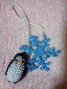 材質は雪がレース糸、ペンギンが刺繍糸なので、特にペンギンは濡らさないようにご注意下さい。色落ちする場合があります