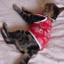 (1)フィット感をだすために猫ちゃんのスリーサイズの平均データを集め、改良を重ねました。