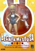 スクール水着姿で仁王立ちする「ベッキー」と、彼女の足にしがみつく「メソウサ」を立体化。原型製作は、BHP(まるちしんく)。専用ベースとメソウサ付属