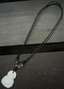 ホワイトオニキスに布袋さんを彫ったペンダントトップをネックレスに仕上げました。