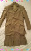 ロング丈ジャケットとボックスプリーツミニスカートのスーツです