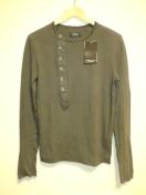 カラーは渋いカーキ!シルエットはタイトな作りで、首元はすっきりとしたZARA独特のデザイン、広めのサイドヘンリーで、ボタンを開けたら変形スタイルになります☆