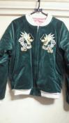 フラットヘッドの深緑別珍×ピンクシルバーフィラメントレーヨンのスカジャンです。