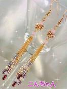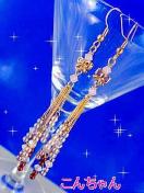 ◎リボン〓スワロフスキービーズ&パールビーズ使用★ロングピアス。