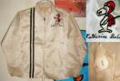 L.Aのビンテージ屋で購入しました古着です。汚れあり着用感もそれなりにあります。ビンテージ中古なので、多少の汚れ染みや生地の擦れ縫製とび痛み等もございますが着られないような大きな穴や破れはございません。猫目ボタン使いで高級感と光沢のあるサテンの様な生地にスヌーピーの愛らしい刺繍のマッチングが絶妙です。右前の縦に走るレーシングストライプがかっこいいです。年代は、60年代のものだと思います。