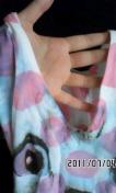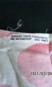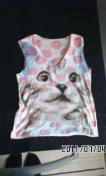 白にピンク色ロゴとドット柄、転写猫プリント