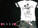 フロントにミッキーが手書き風にプリントされたTシャツ