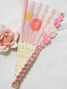 幻想的で艶やかな華が描かれた扇子にカメリア.薔薇.高級ラインストーン等を使用し可愛く仕上げました!!