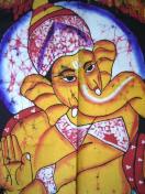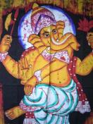 バティックのタペストリー、富、学問、愛情の神ガネーシャのデザインです。