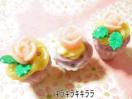 たっぷりクリームの上にストロベリーチョコレートでローズをデザインした、キレイで美味しそうなカップケーキ